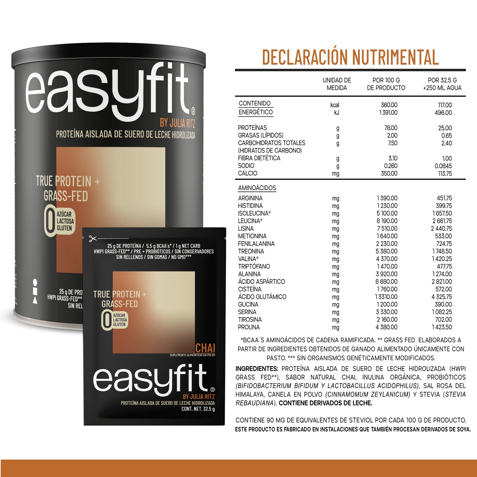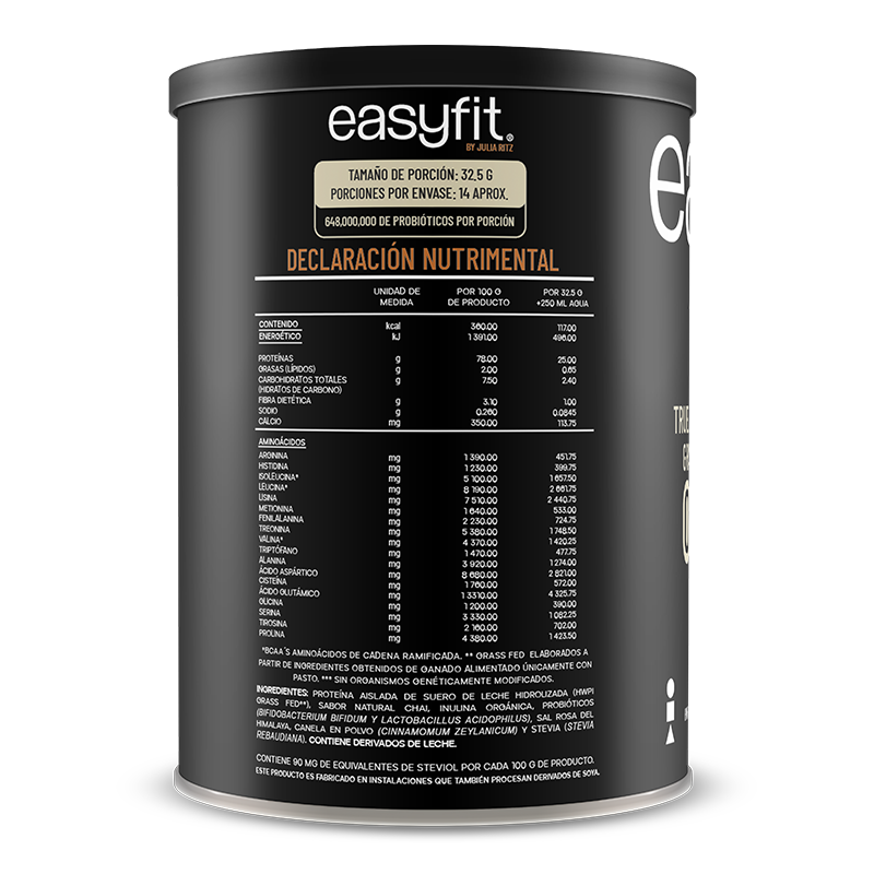Elaborada con proteína aislada de suero de leche hidrolizada (HWPI GRASS-FED, NO GM0) proveniente de vacas, alimentadas con una dieta que incluye pasto natural y otros forrajes. Nunca han sido alimentadas o inyectadas con hormonas esteroides o potenciadores del crecimiento y la hidrólisis se da por un proceso enzimático para obtener la máxima funcionalidad.
